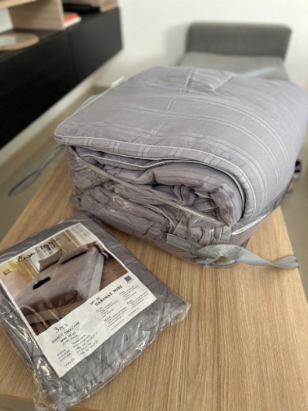 Combo acolchado + juego de sábana gris 🤍